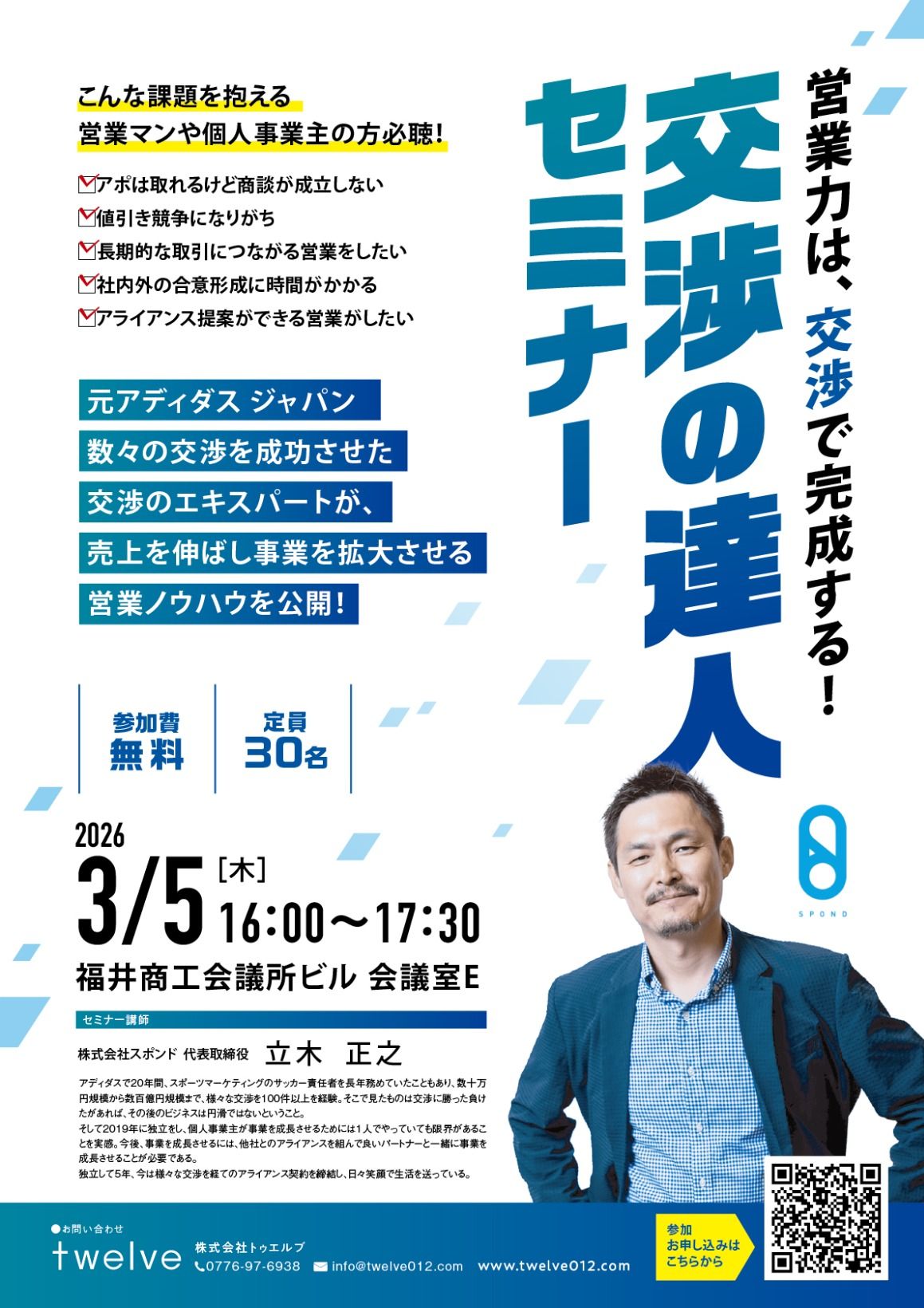 【2026年3月5日(木)開催】交渉の達人セミナー開催@福井商工会議所